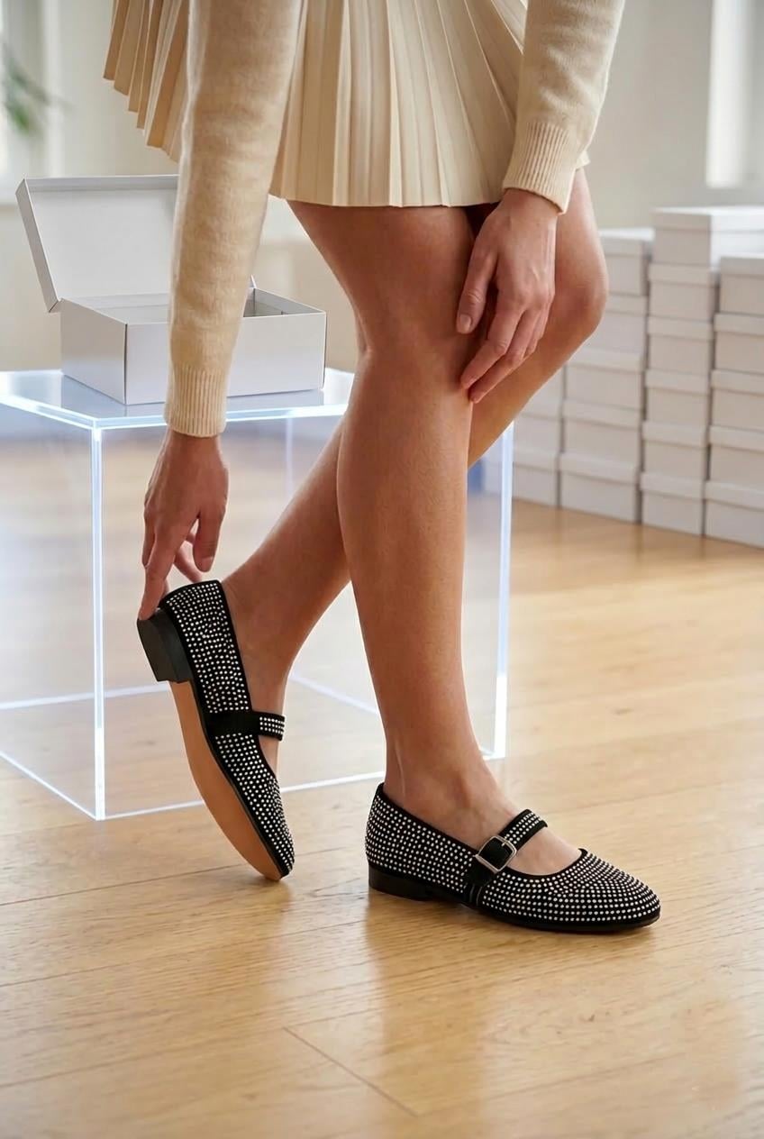 Vojo Luna Süet Taş İşlemeli Mary Jane Kadın Babet Abiye
